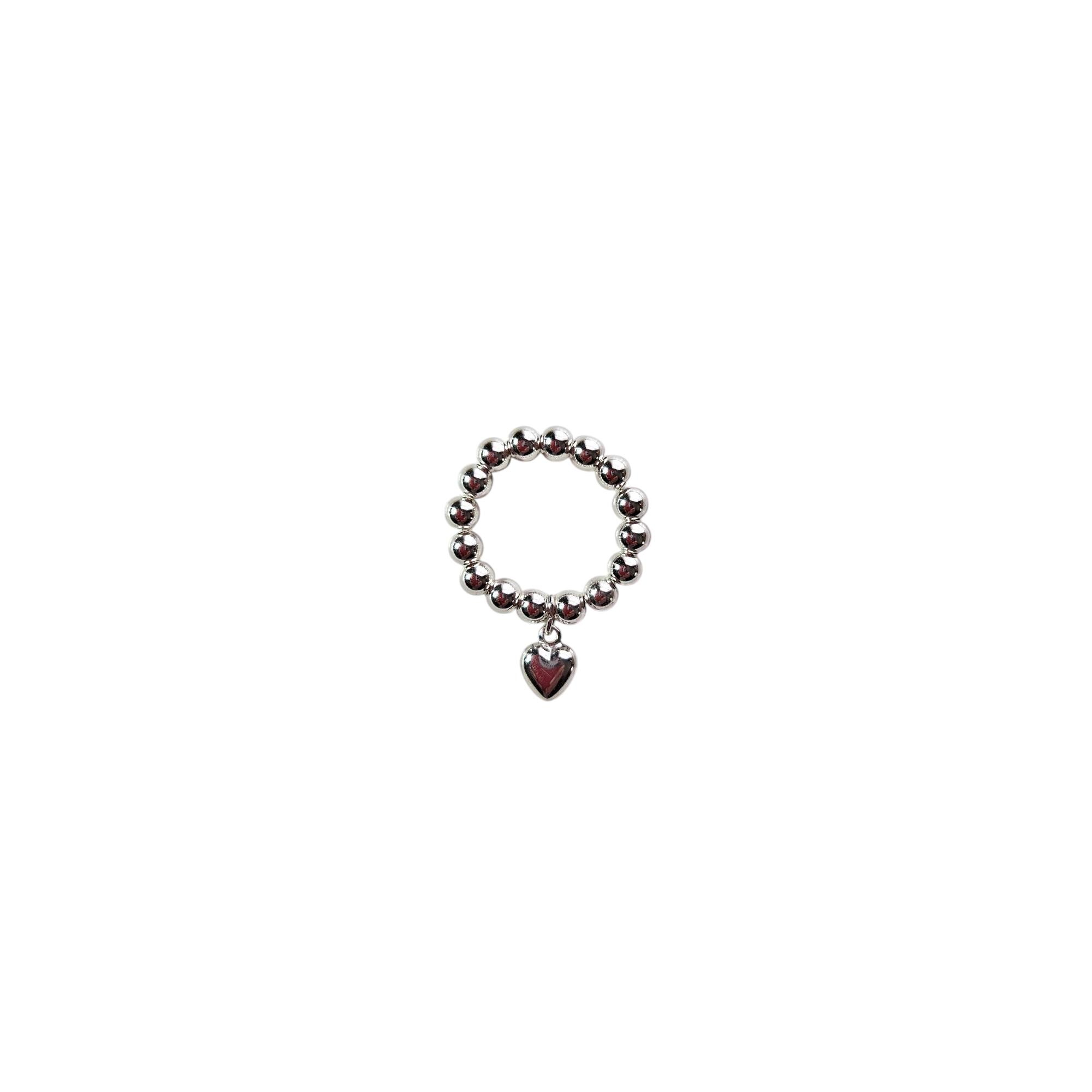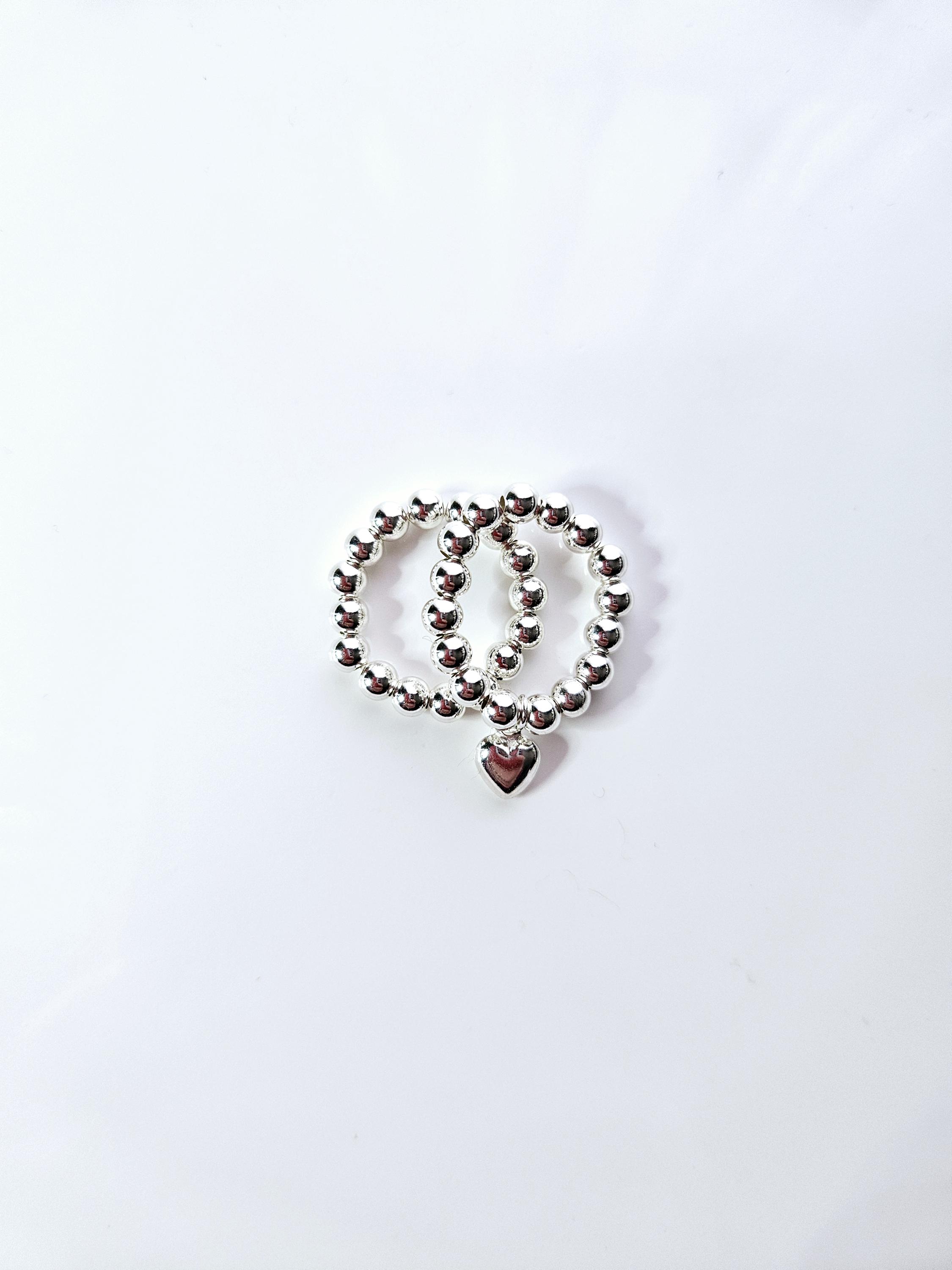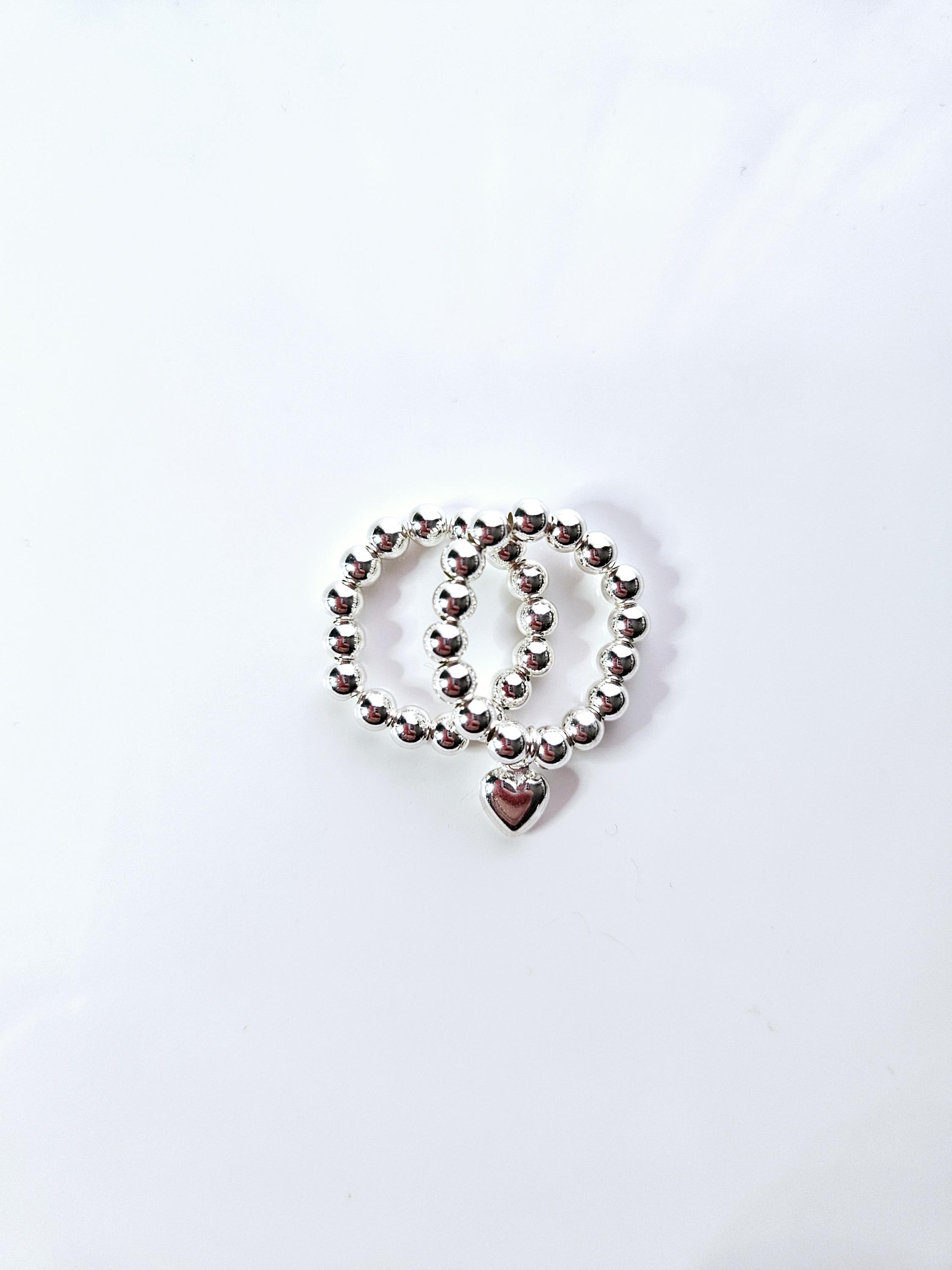 This beautiful puffed heart stackable charm ring is made with 4mm sterling silver beads and a sterling silver heart charm. This ring is sold with a second 4mm sterling silver beaded ring without the charm so you can stack and wear together.
