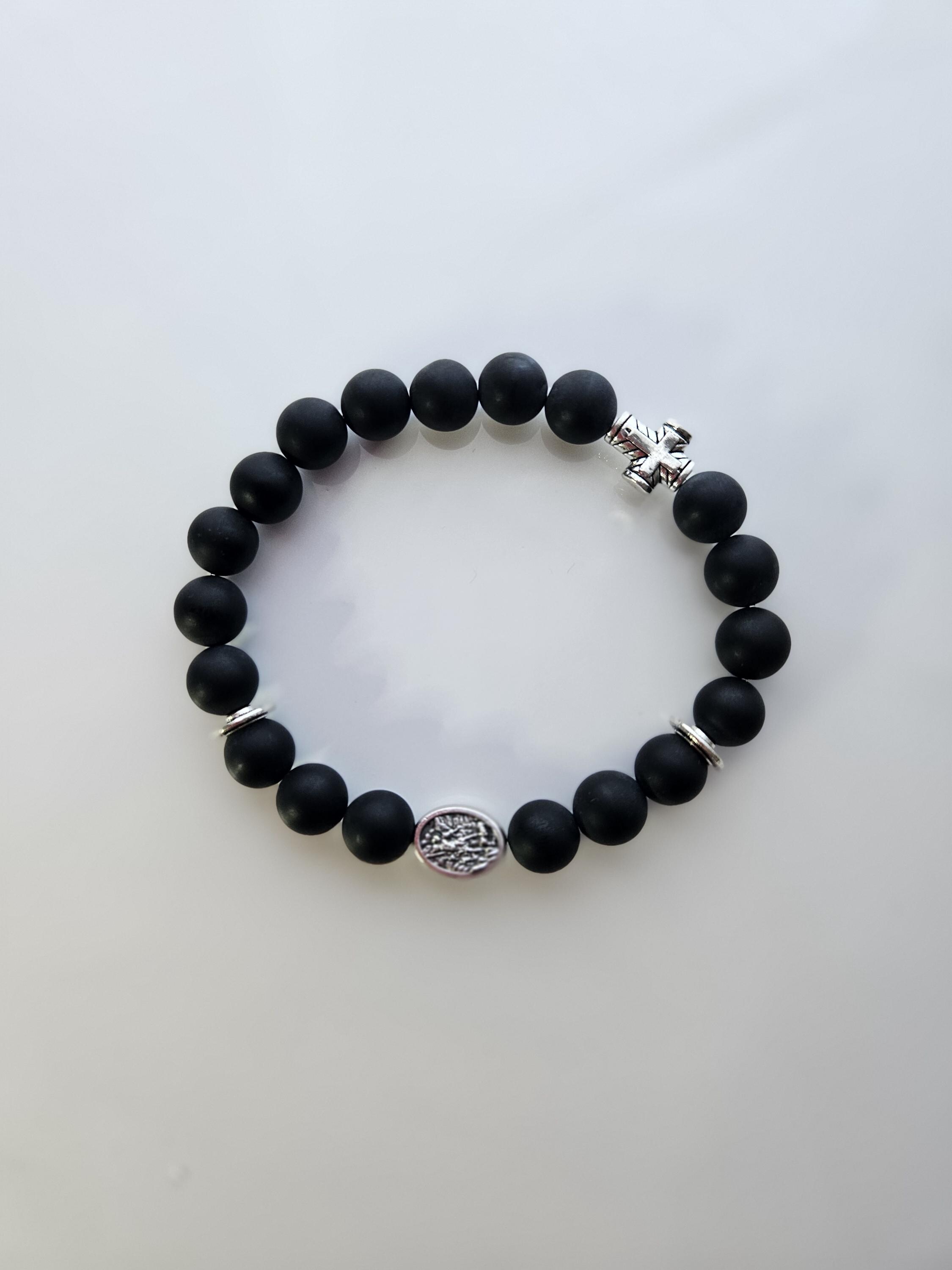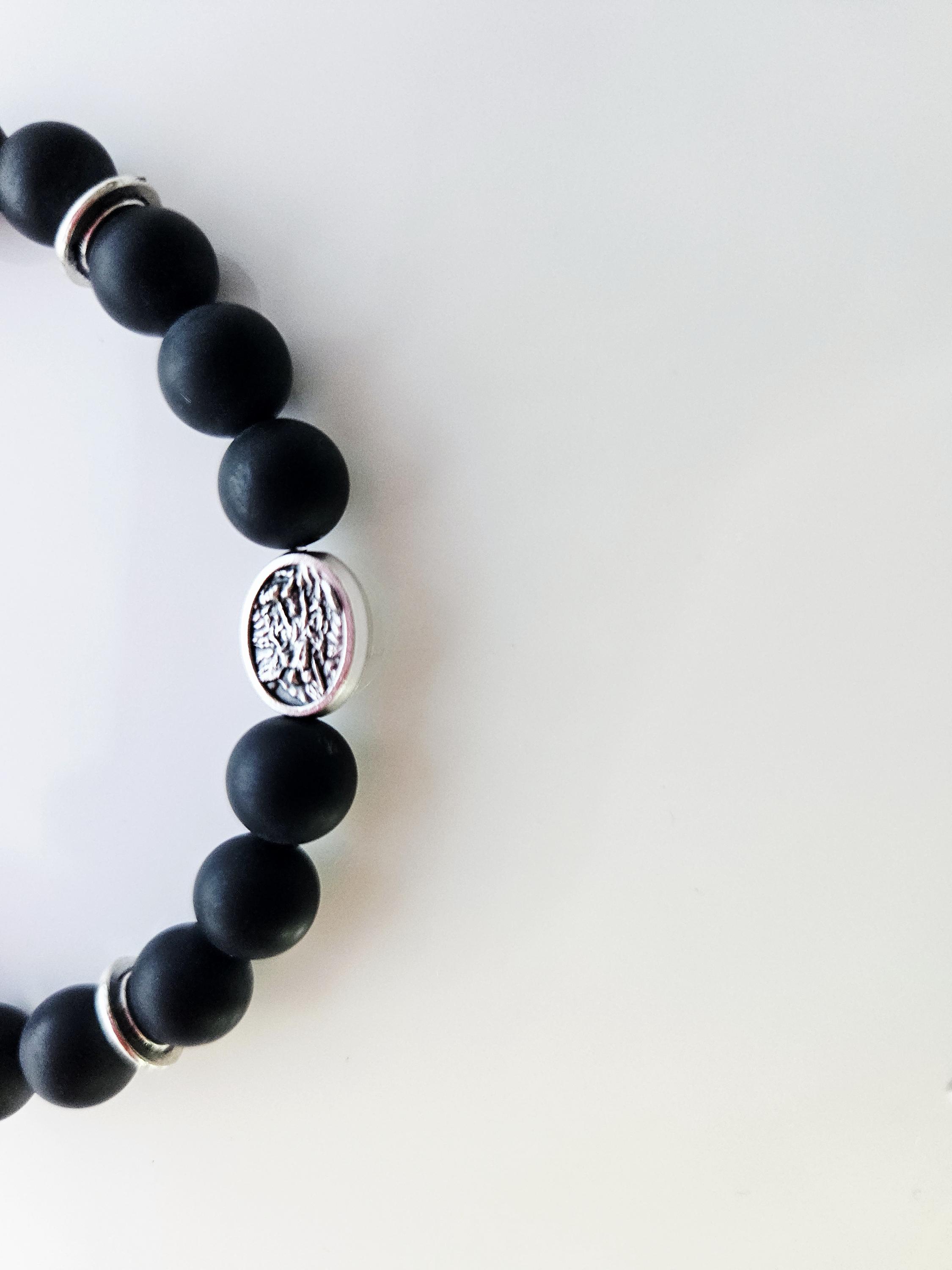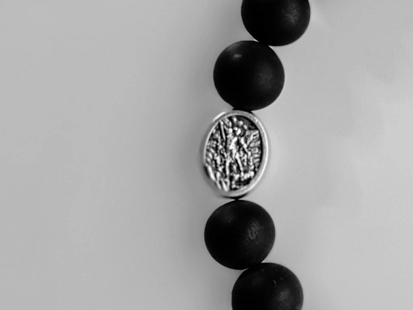 These beautiful Patron Saint bracelets are made with 8mm black onyx gemstone beads a silver cross and Archangel Michael metal bead.